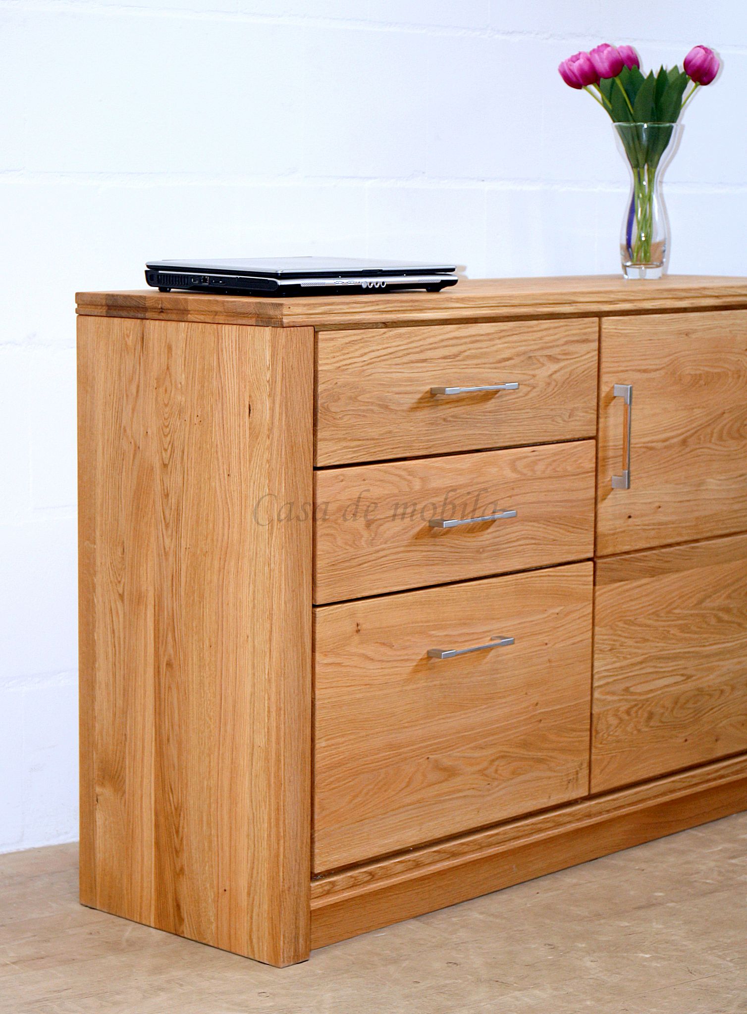 Ein edel und hochwertig gestaltetes Sideboard, gefertigt aus Rustikaler Asteiche, entweder Natur oder bianco geölt. Dieses Lowboard besticht durch seine hohe Vielseitigkeit und Einsetzbarkeit. Hinzu kommen zwei Schubladen, eine Holz-Klapptür, eine Stauraumschublade mit jeweils einem, gebürstetem Metallgriff. Hergestellt aus bestandsgepflegten Forsten, bietet dieses Sideboard das Maximale an Wohnkomfort und überzeugt in seiner herausragenden Qualität. In diesem schicken Möbelstück steckt viel Handarbeit und Liebe zum Detail. Dieses lebendige Naturprodukt zeichnet sich durch seine unverwechselbaren Echtheitsmerkmale aus - Maserungen, Verwachsungen, Unregelmäßigkeiten sowie Spannungen sind typische Eigenschaften und Sie dürfen sich somit auf ein echtes Unikat freuen.