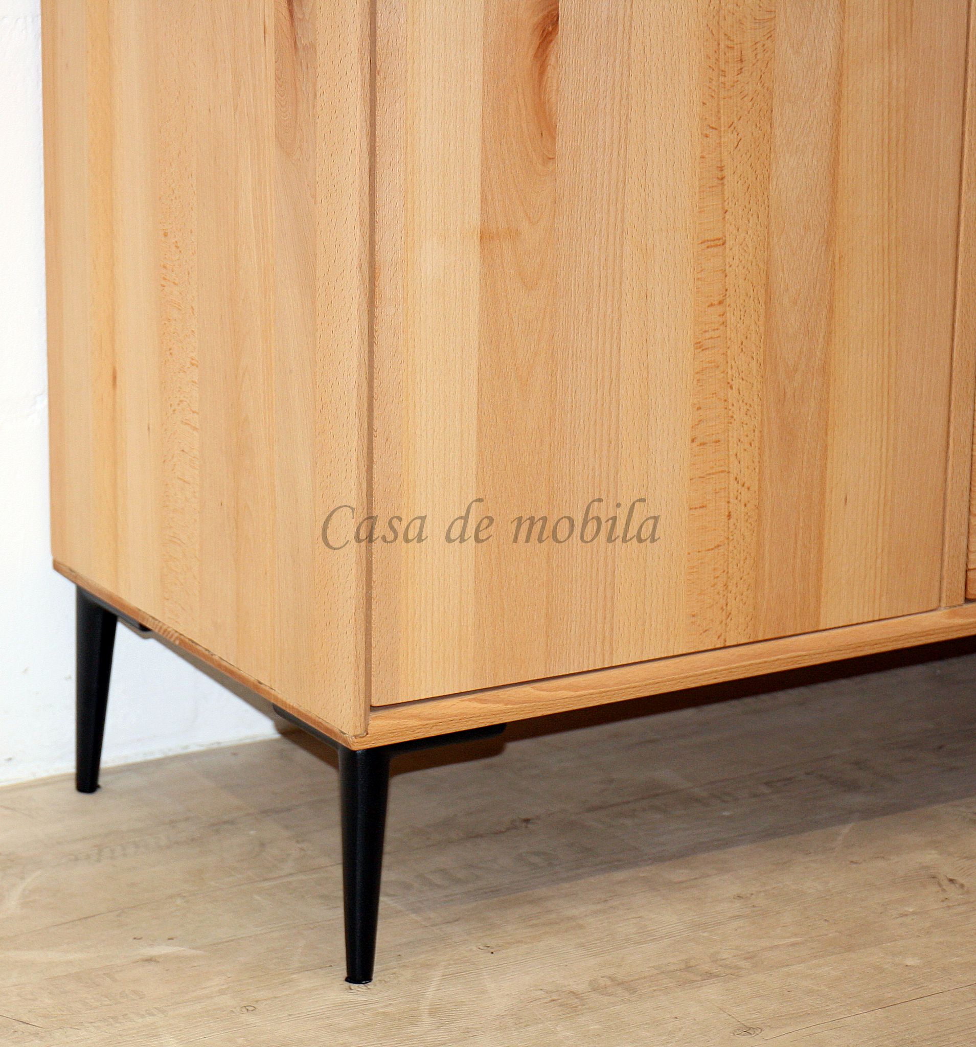 Die Fotos zeigen die Kommode mit schwarzen Metallbeinen. Wenn die Füße nicht an das Untergestell montiert werden, kann die Kommode auch an der Wand aufgehängt werden.
