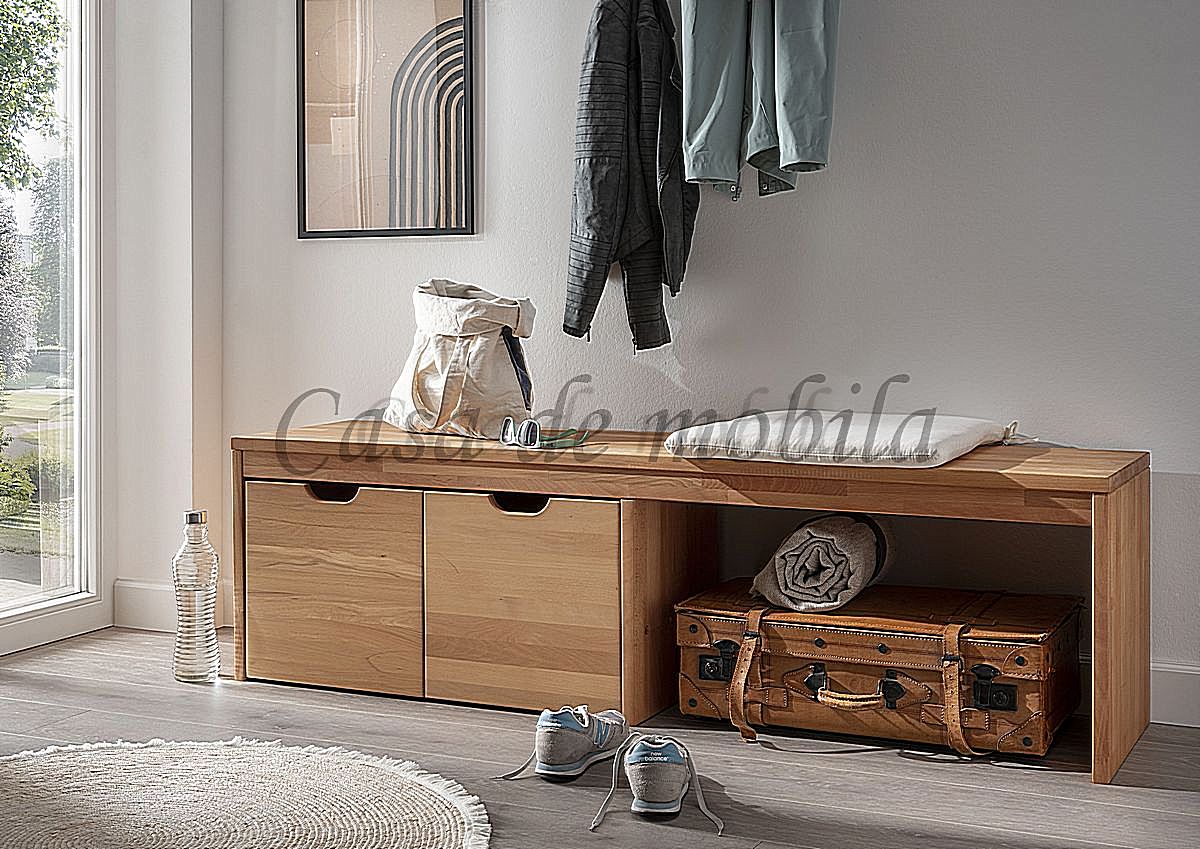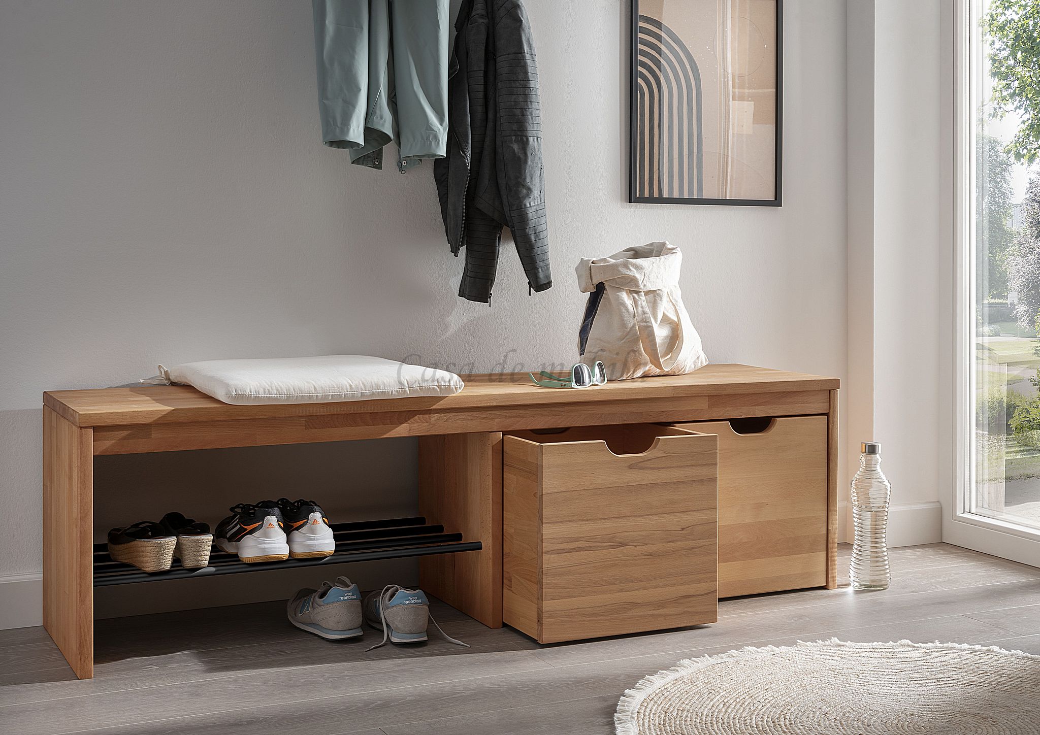 Sitzbank mit Schuhablage und Schubladen 160x45x40cm GOMMA Kernbuche massiv natur geölt