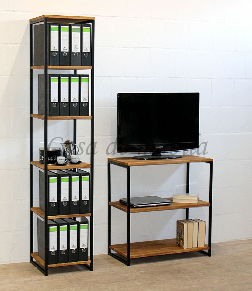Dieses elegante Bücherregal LISSABON hat ein schwarzes Metallgestell und natur geölte Ablageböden aus massiver Wildeiche. Die harmonische Kombination aus robustem Holz und modernem Metall verleiht Ihrem Wohnzimmer oder Diele und Flur einen stilvollen und zeitlosen Look.