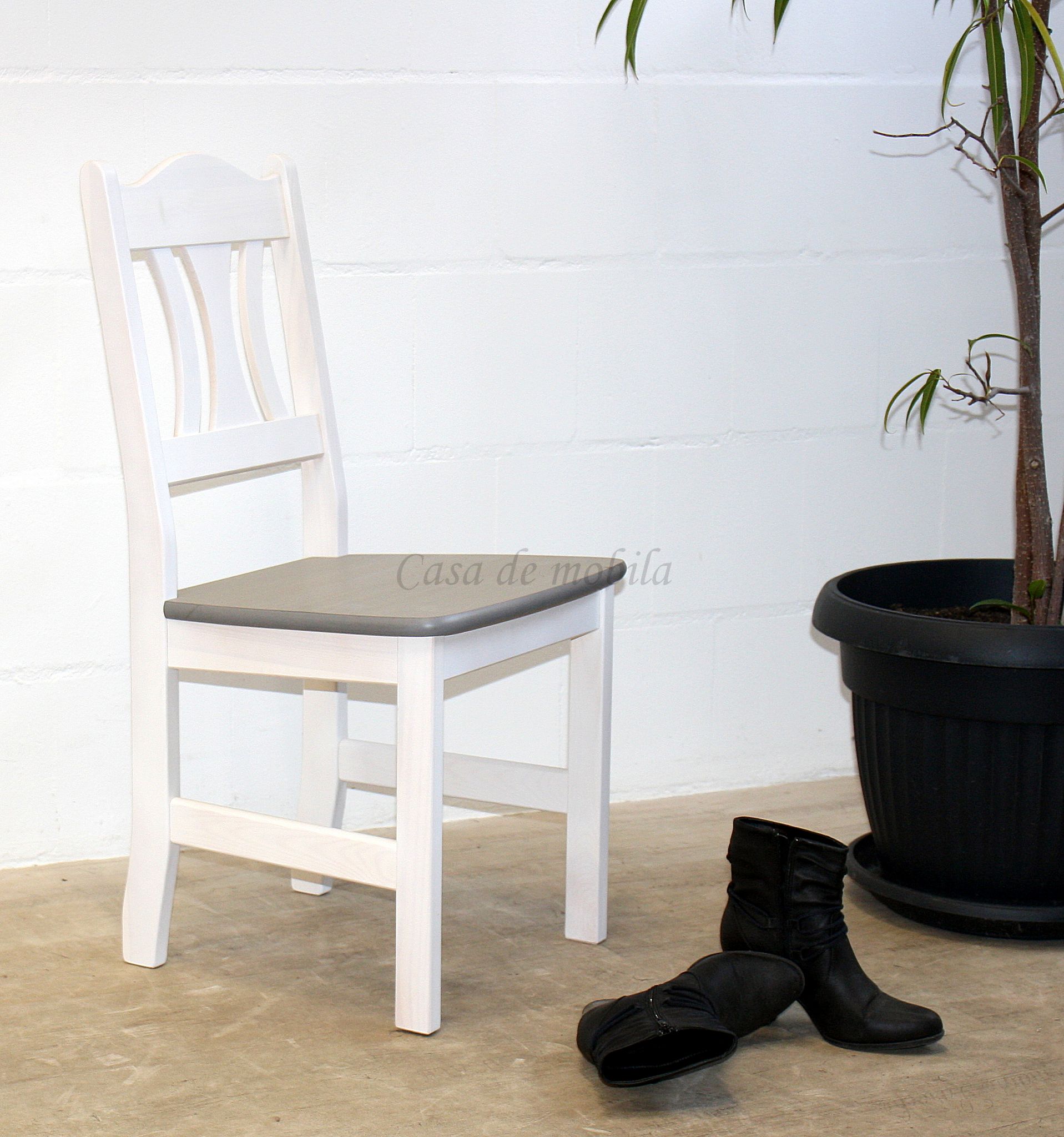 Holzstuhl massiv Oberfläche: 2-farbig weiß / grau