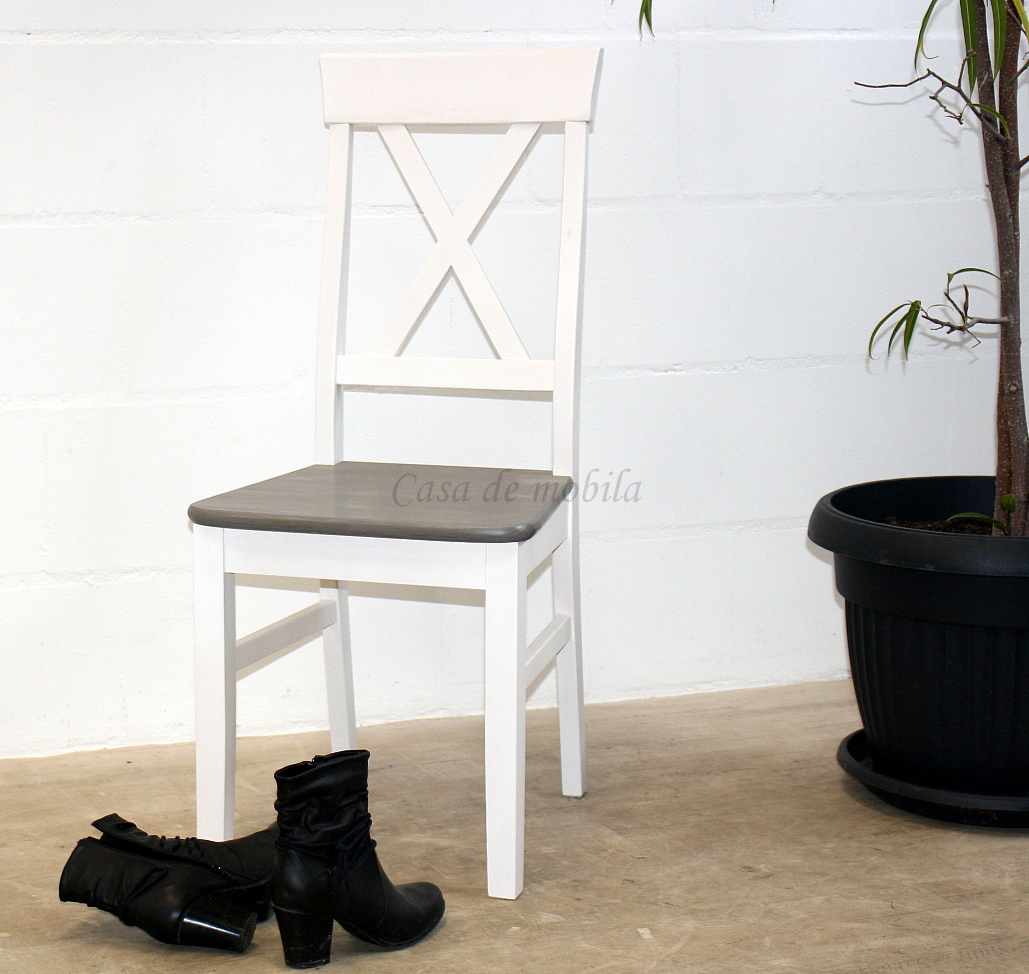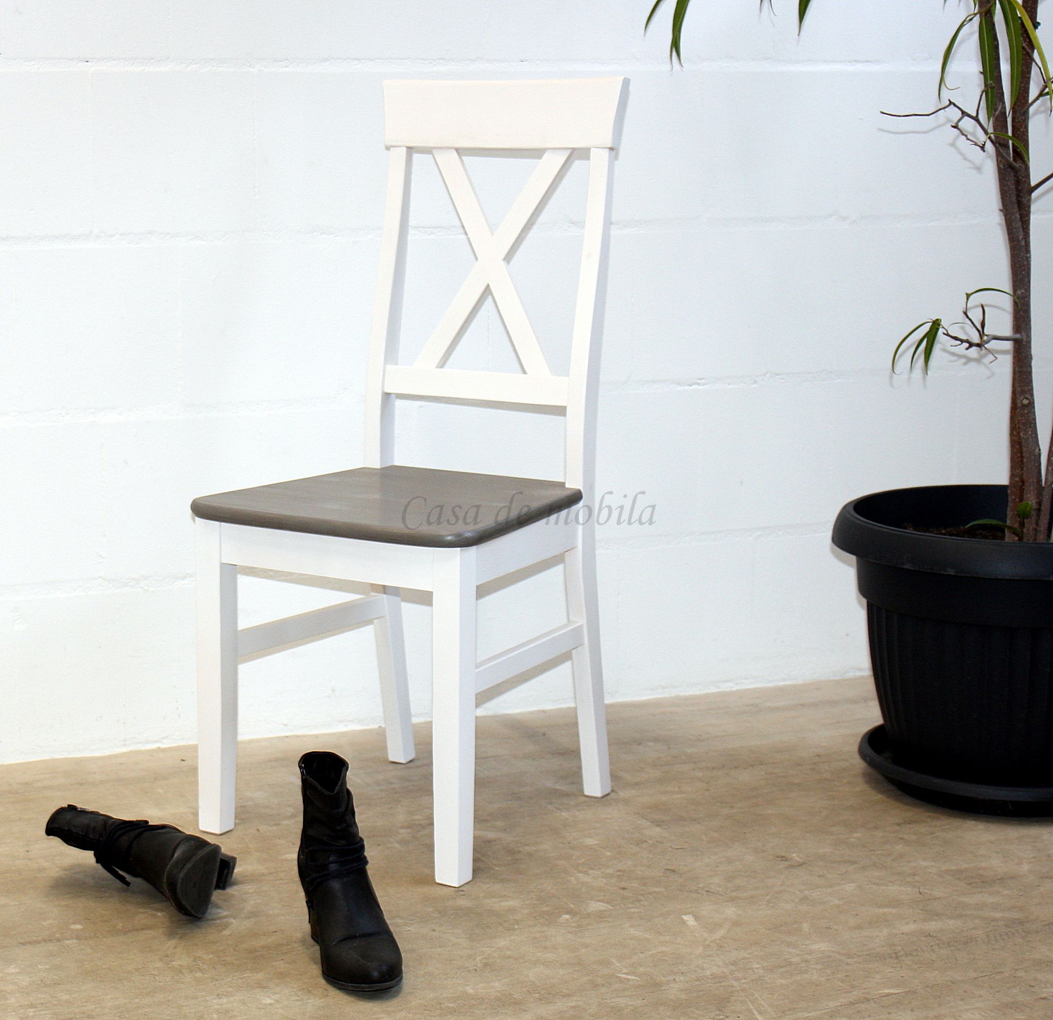 Dieser Holzstuhl ist aus massivem Kiefernholz gefertigt.