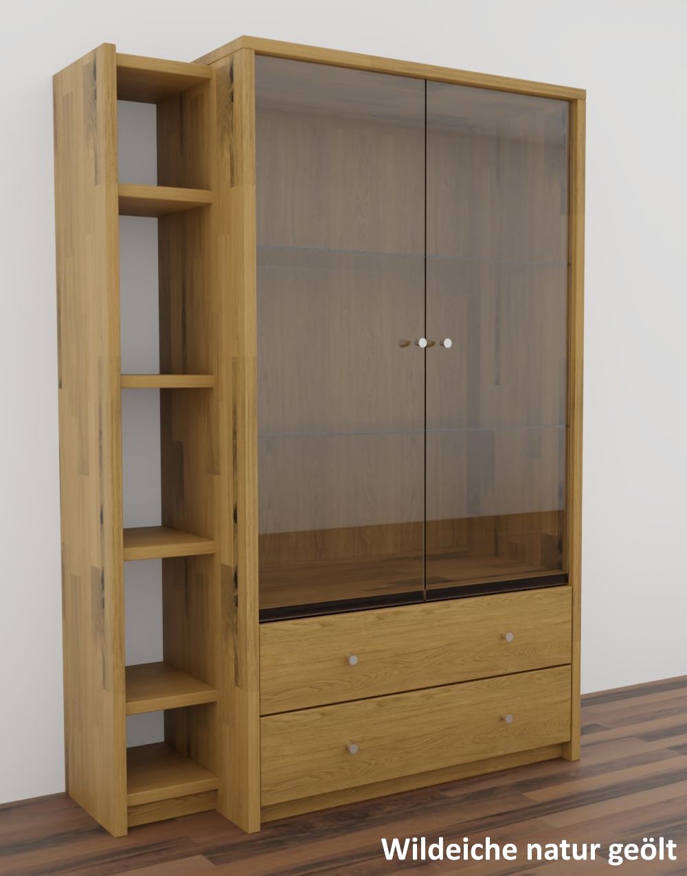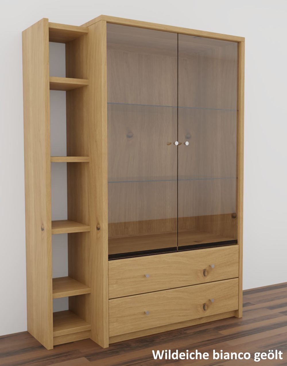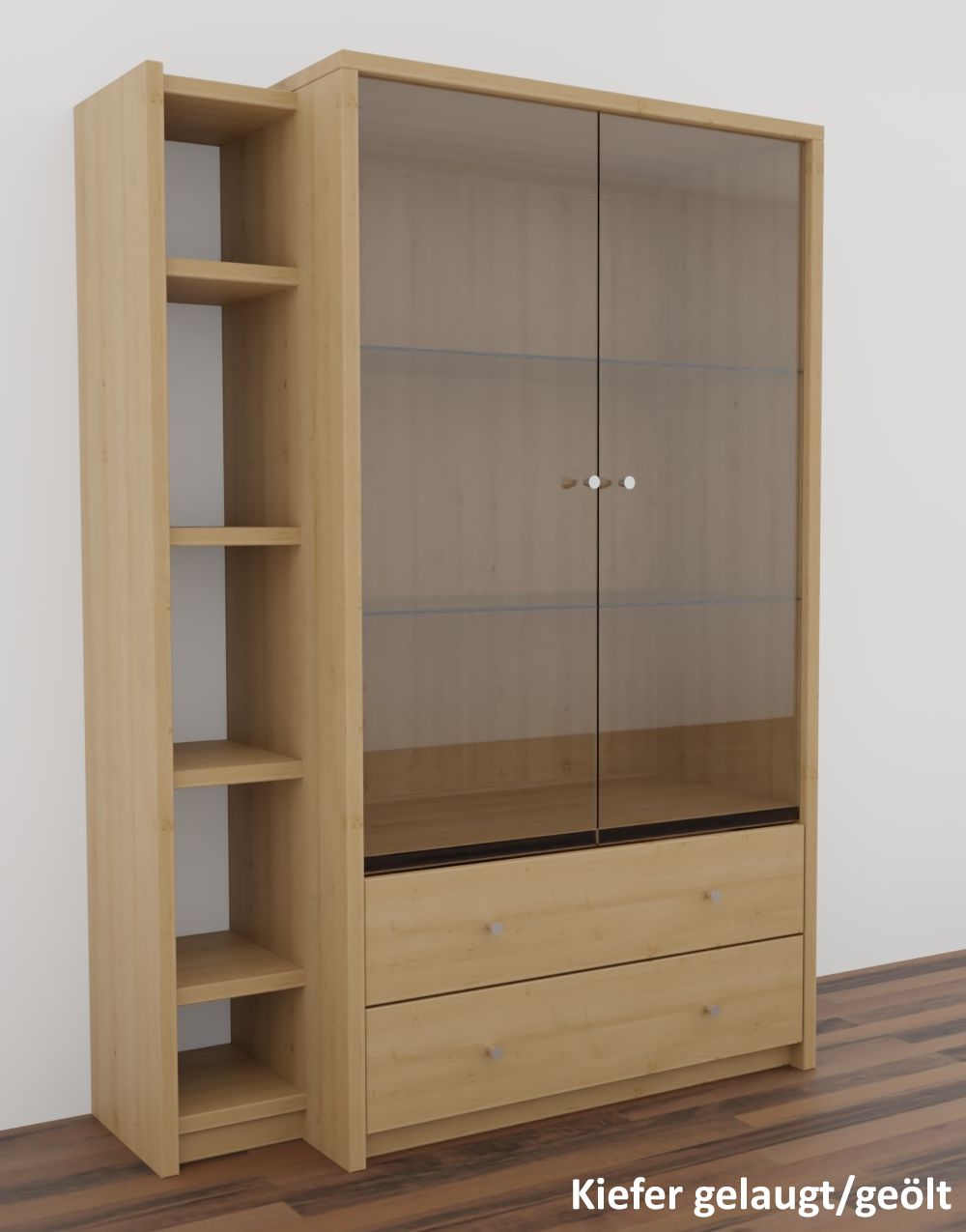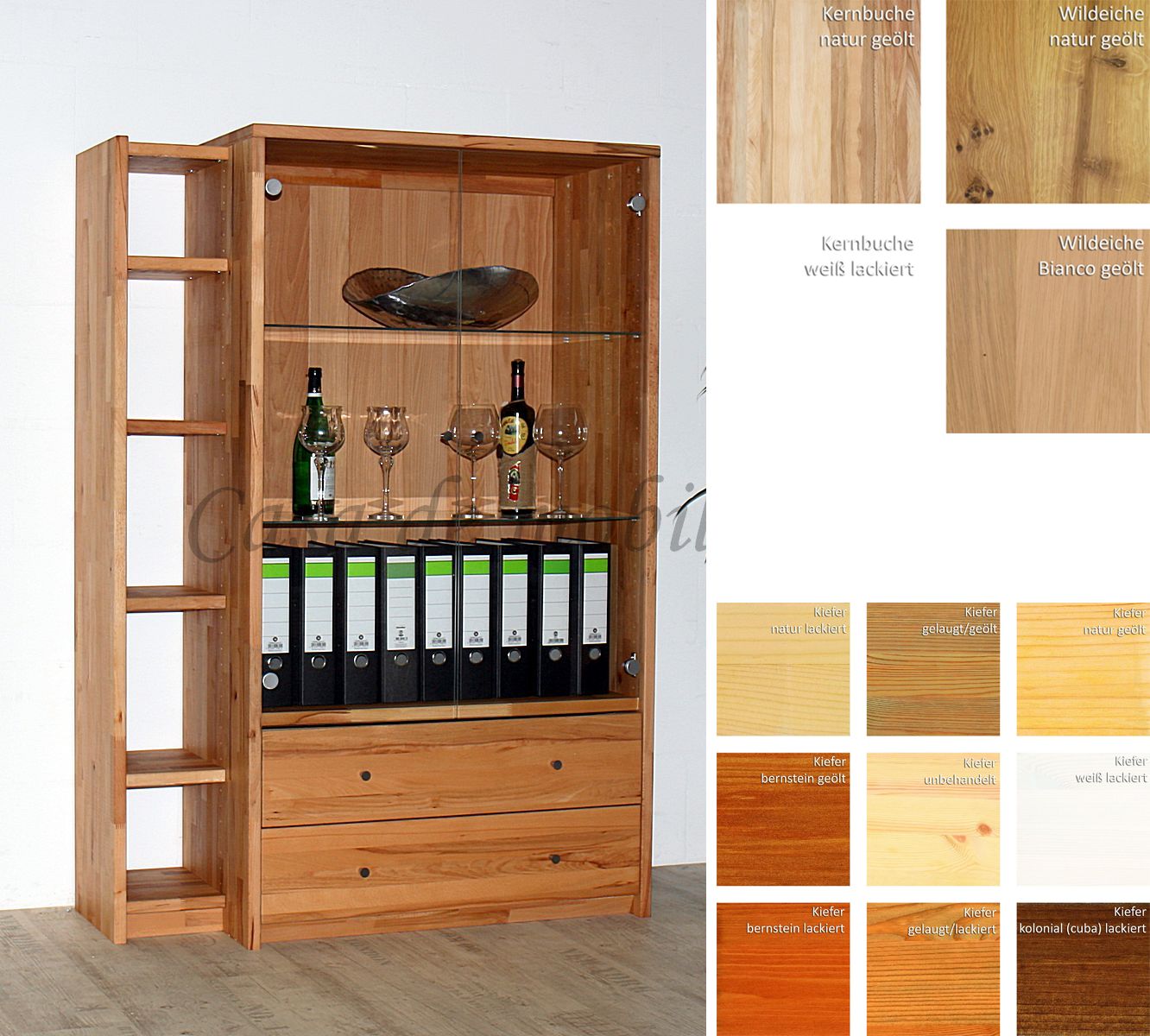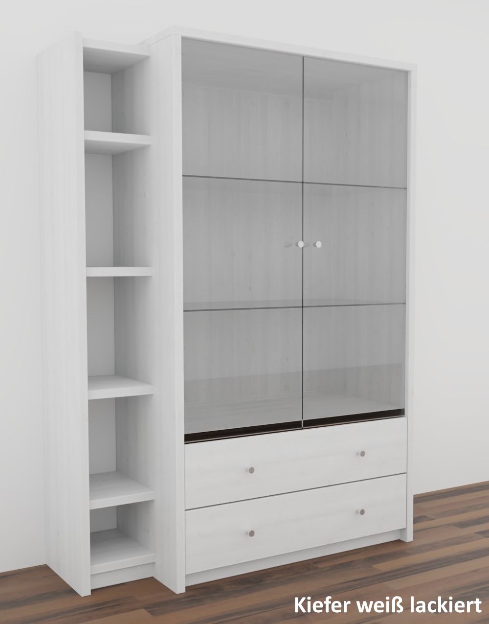 Die Vitrine CONTRA ist aus Kiefernholz, Buchenholz oder Eichenholz lieferbar. Es stehen verschiedene Oberflächenbehandlungen wie geölt, lackiert oder weiß zur Auswahl. Das Möbelstück wird in Dänemark aus Massivholz gefertigt.