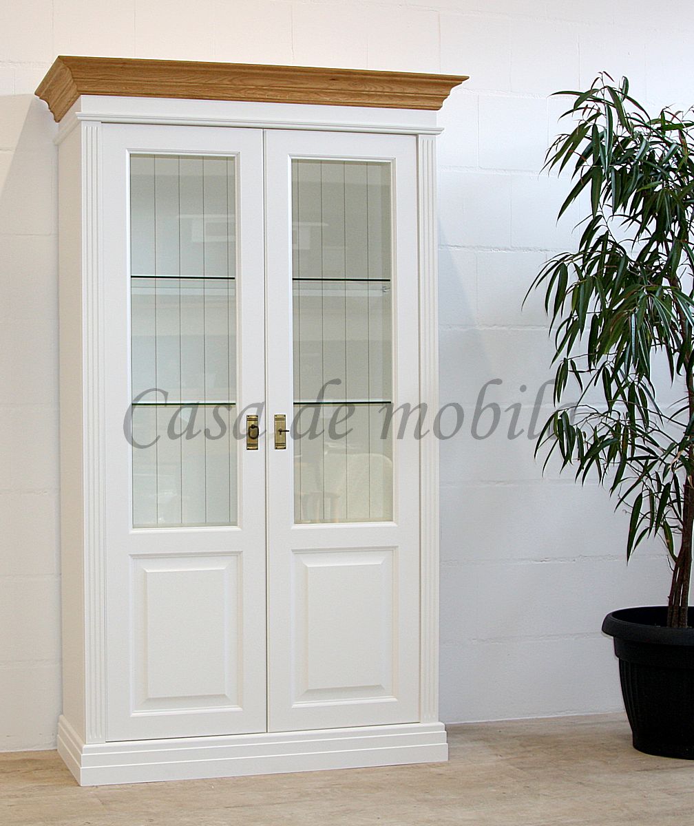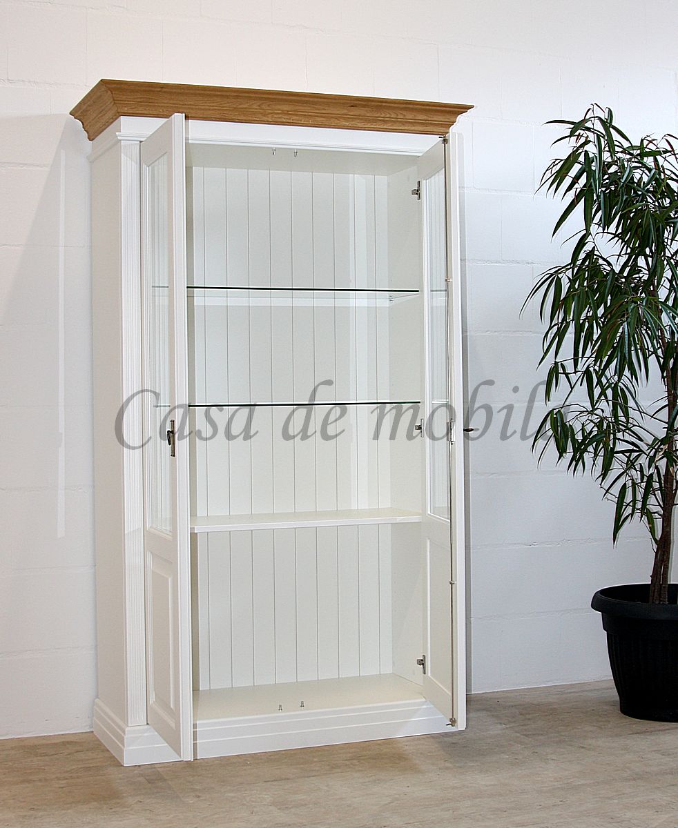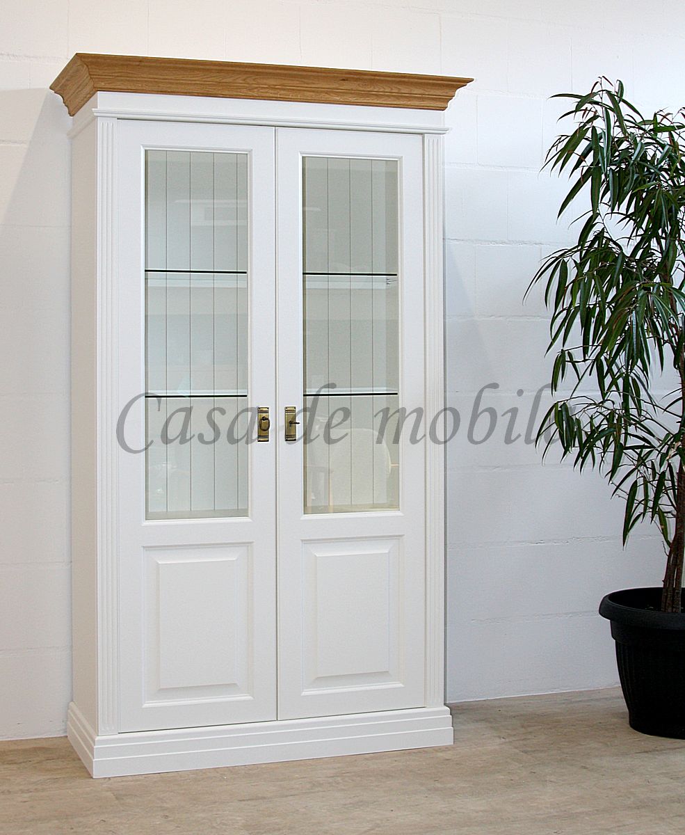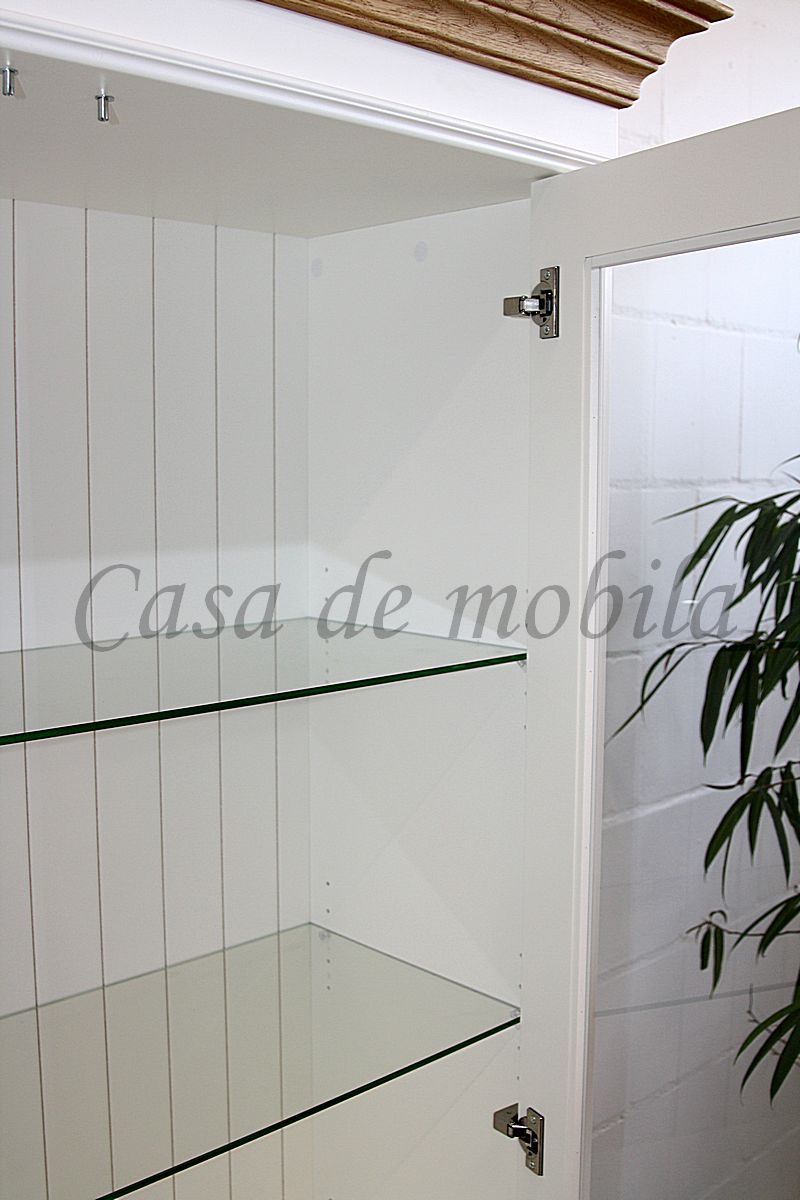Vitrinenschrank NORDIC HOME 117x196x45cm Kiefer massiv weiß lackiert / Wildeiche geölt
