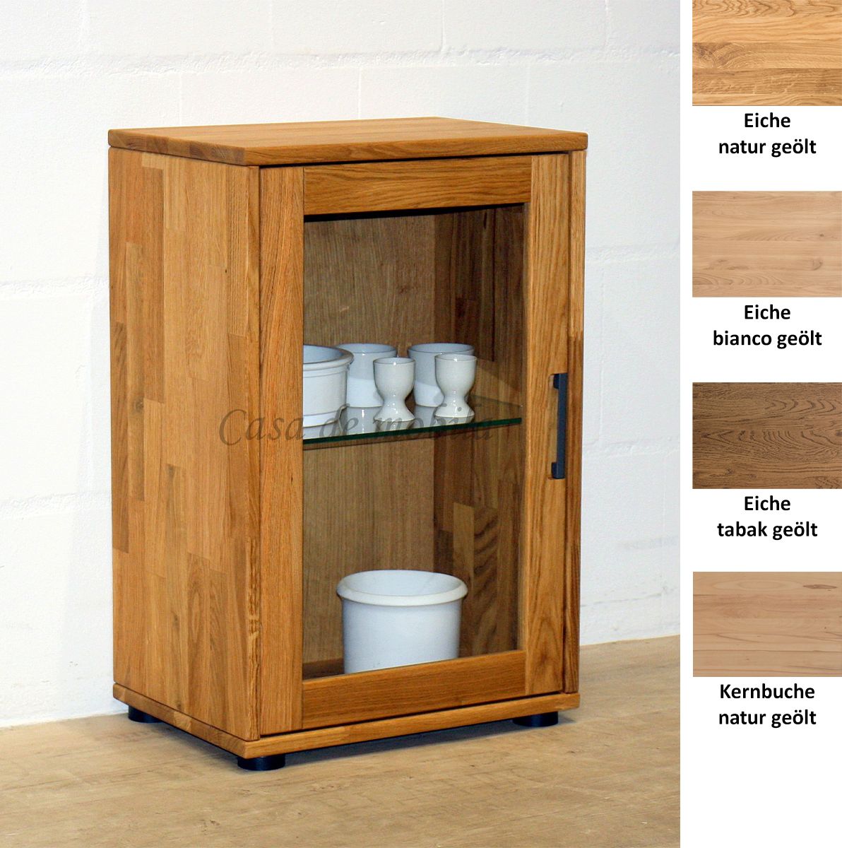 Die Oberfläche dieser Vitrine ist aus massiver Buche oder Eiche gefertigt und hat eine geölte Oberfläche.