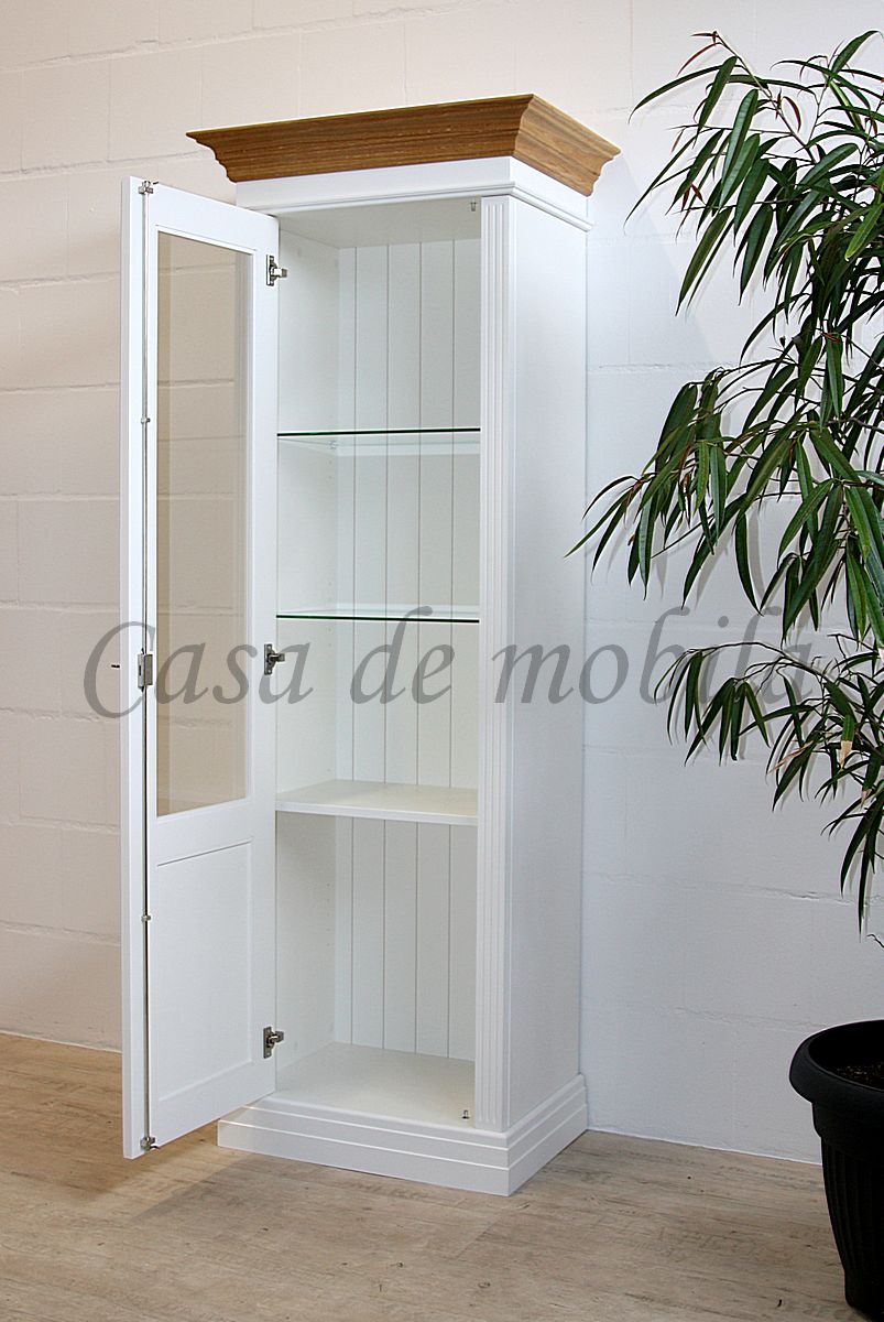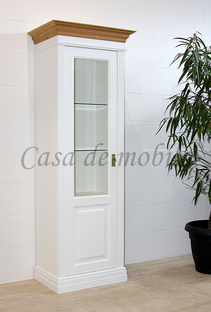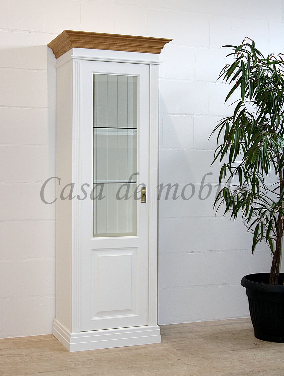 Massivholz Vitrine links - Kiefer weiß / Wildeiche geöltWohnzimmerschrank - Vitrinenschrank