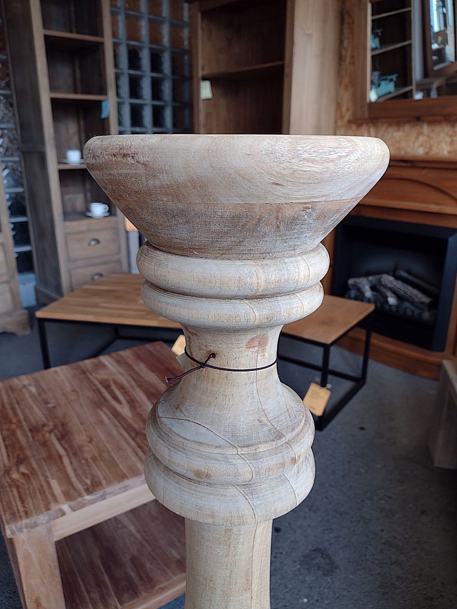 Entdecken Sie den eleganten Kerzenständer LUCERNA – ein stilvolles Highlight für Ihr Zuhause! Mit einer beeindruckenden Höhe von 110 cm und einem Durchmesser von 29 cm ist dieser Kerzenständer aus massivem Mango-Holz gefertigt und verleiht jedem Raum eine warme, natürliche Atmosphäre. Das natur gebeizte und geölte Finish unterstreicht die einzigartige Maserung des Holzes und sorgt für eine langlebige, pflegeleichte Oberfläche. Ob als Blickfang im Wohnzimmer, auf der Terrasse oder im Eingangsbereich – der Kerzenständer LUCERNA schafft eine gemütliche und einladende Stimmung. Ein hochwertiges, handgefertigtes Möbelstück, das Funktionalität und Design perfekt vereint.