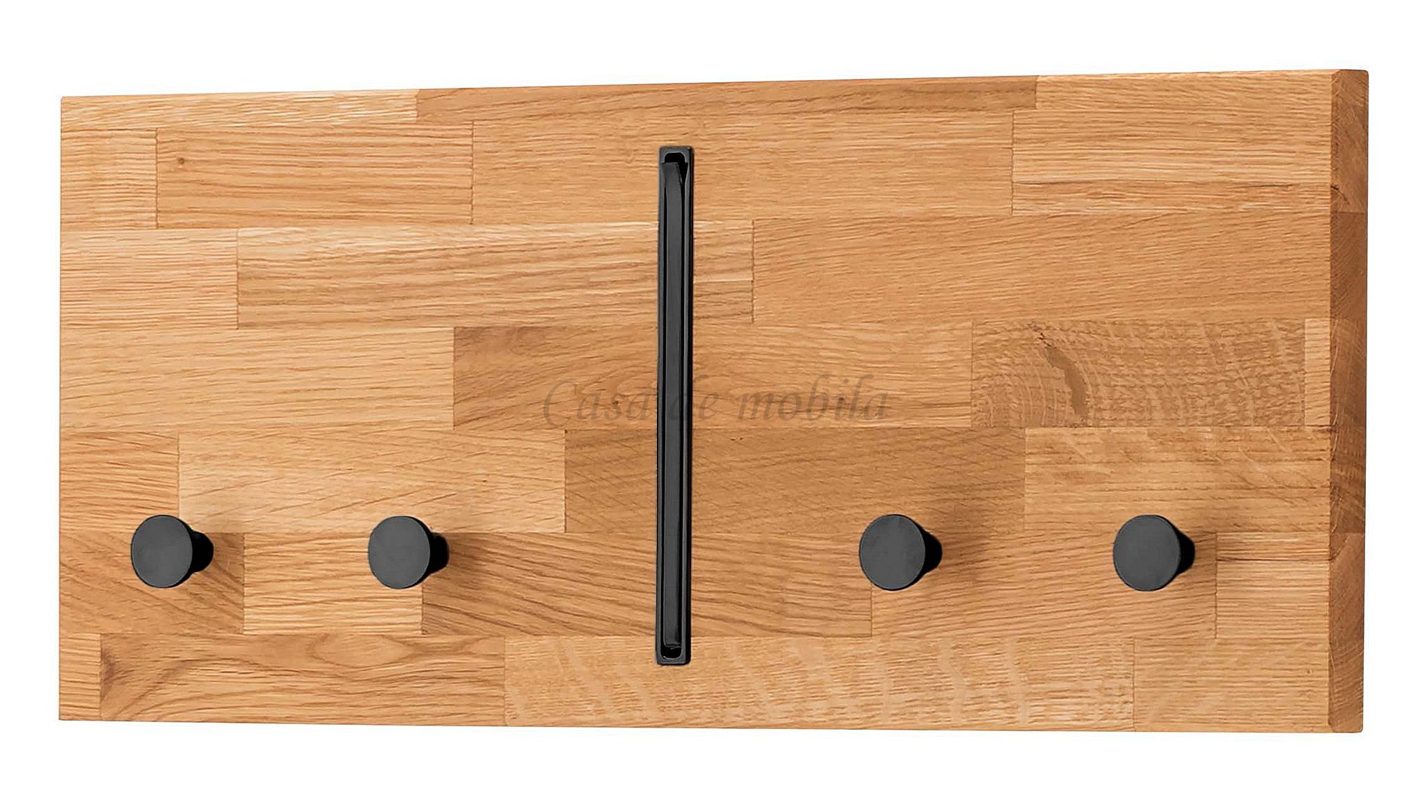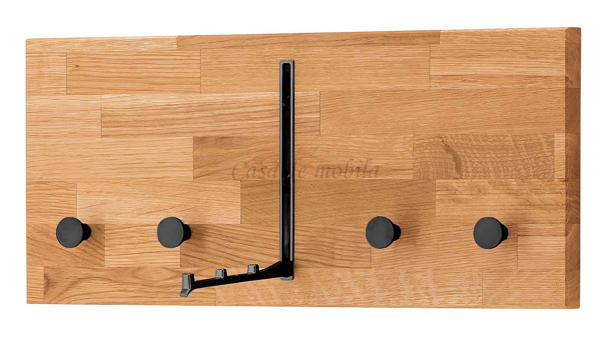 Diese Wandgarderobe ist aus massiver Wildeiche gefertigt, einem Holz mit einer natürlichen Maserung und einer hellen Farbe. Die Garderobe ist horizontal ausgerichtet und hat eine Breite von etwa 80 cm. Sie ist eine perfekte Ergänzung für jeden Flur oder Eingangsbereich und bietet eine praktische Möglichkeit, Jacken, Mäntel und andere Kleidungsstücke aufzuhängen.