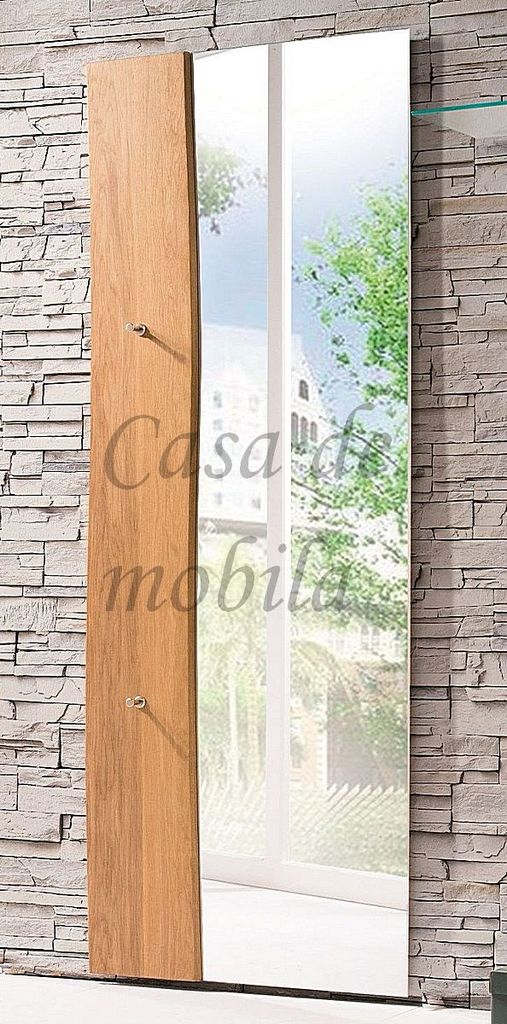 Die Oberfläche des Holzrandes dieses Garderobenspiegels ist aus massiver Eiche gefertigt und hat eine geölte Oberfläche.